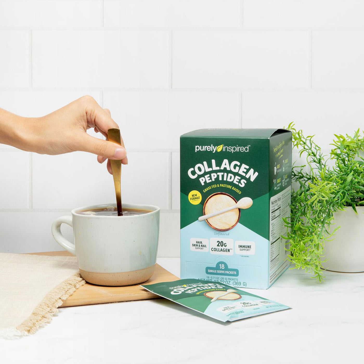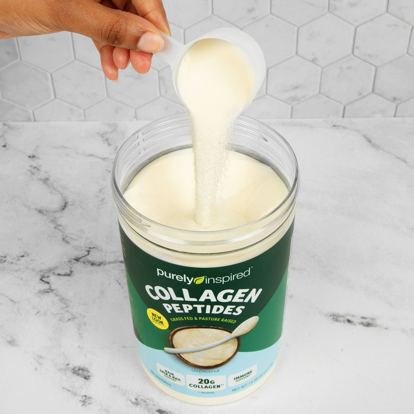 Purely Inspired Collagen Peptides is sourced from grass fed, pasture raised bovine and does not contain recombinant bovine growth hormone (rBGH). This unique formula provides 18g of protein, plus a B vitamin complex to support metabolic energy.